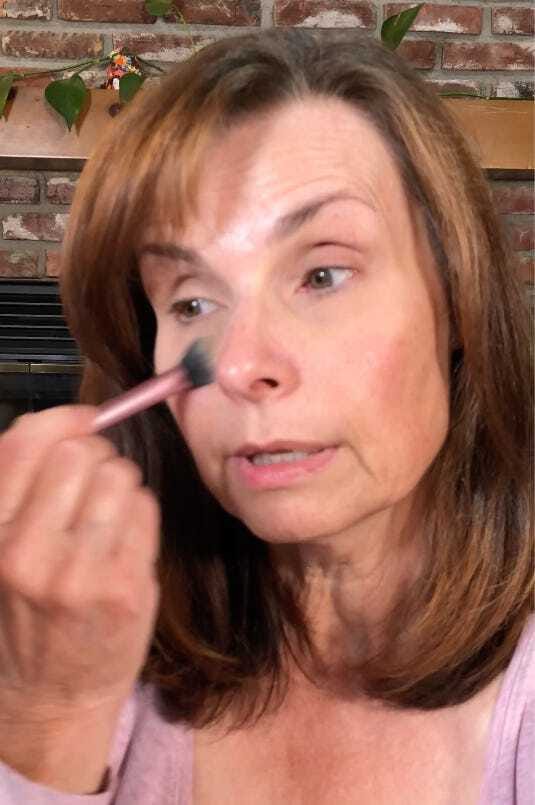 To put this technique into action, dot on the NYX Can't Stop Won't Stop concealer and swipe the Elf Peach Corrector right between the two NYX swipes. This not only adjusts the concealer shade but also effectively works to correct dark circles and brighten your eye area. Use a brush to gently blend the two products without working them in completely. Allow them to dry for a few seconds before gently pouncing with a Beauty Blender to blend into the skin.